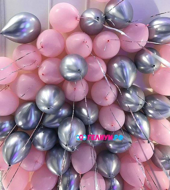 Латексный шар 30 см, пастель, розовый — 50 шт Латексный шар 30 см, хром, серебряный — 50 шт