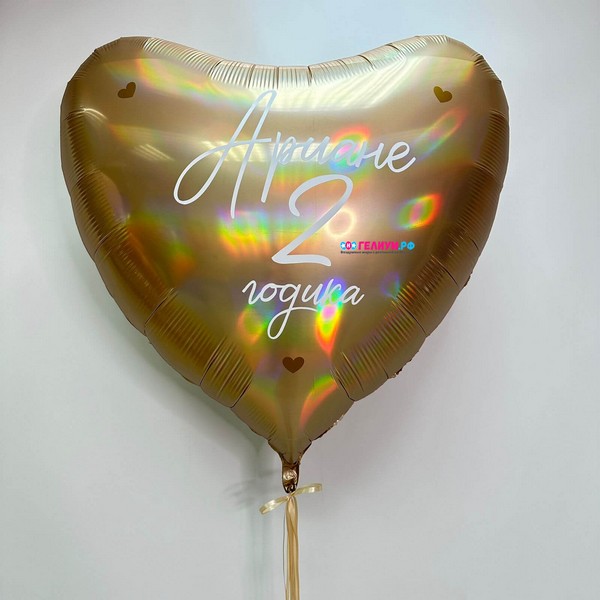 Наклейка на фольгированный шар 76-91 см — 1 шт Шар (36»/91 см) Сердце, Шампань, Голография — 1 шт