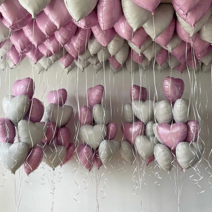 Фонтан с грузиком — 5 шт Шар белое фольгированное сердце 46 см — 50 шт Светло-розовое фольгированное сердце 46 см — 50 шт