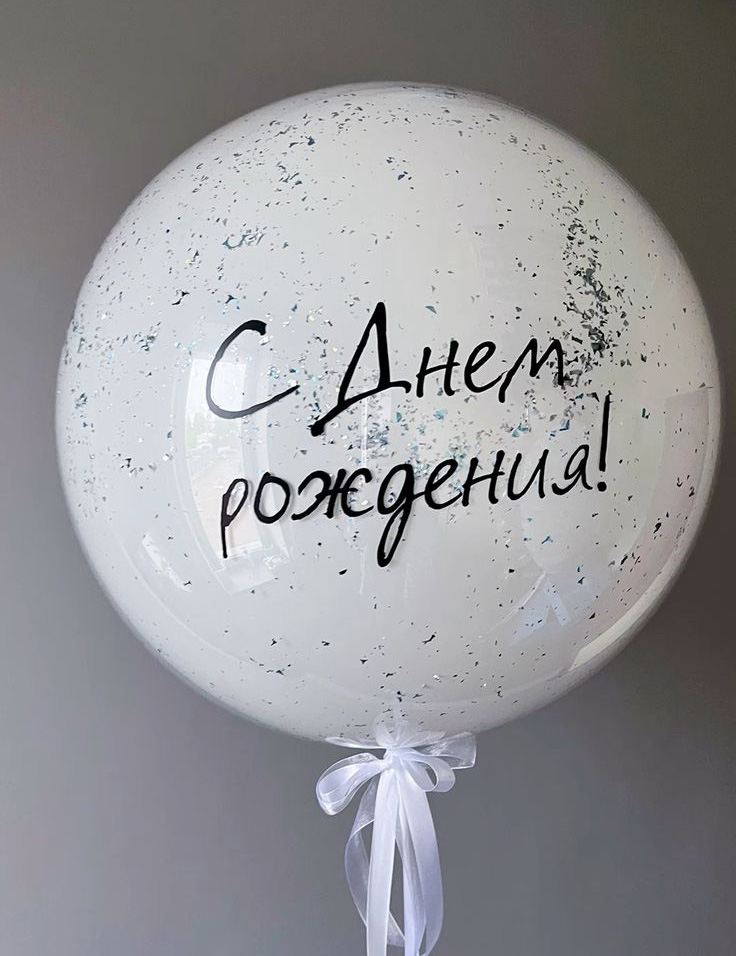 Белый латексный шар, 61 см — 1 шт Наклейка на большой латексный шар — 1 шт Шар 3D Deco Bubble, 91 см, кристалл, прозрачный — 1 шт