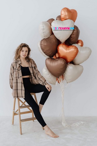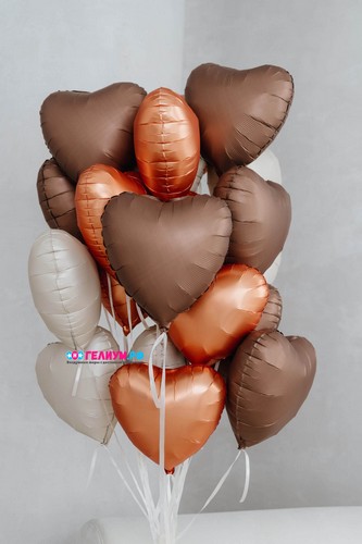 Шар фольгированное сердце, Nude сатин, 46 см — 7 шт Сердце сатин Amber, 46 см — 7 шт Сердце сатин, Cocoa 46 см — 6 шт