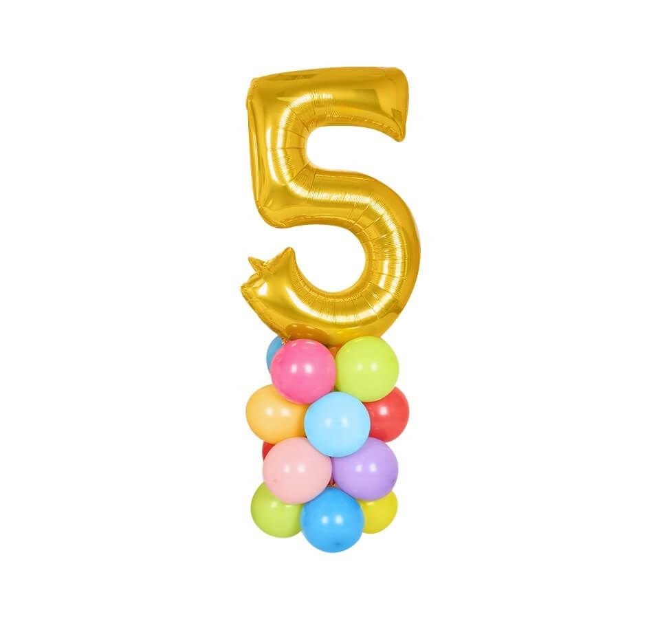 Латексный шар 25 см, пастель, ассорти — 16 шт Цифра 5 золотая, 102 см — 1 шт