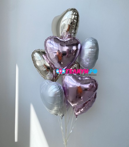 Жемчужное белое фольгированное сердце 46 см — 3 шт Светло-розовое фольгированное сердце 46 см — 4 шт Шар фольгированное сердце, шампань, 46 см — 3 шт