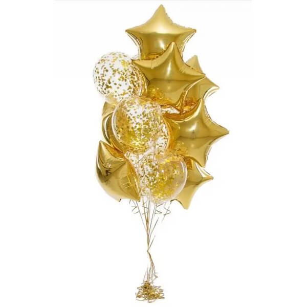 Золотая фольгированная звезда 46 см — 7 шт Шар 30 см, прозрачный, кристалл — 5 шт