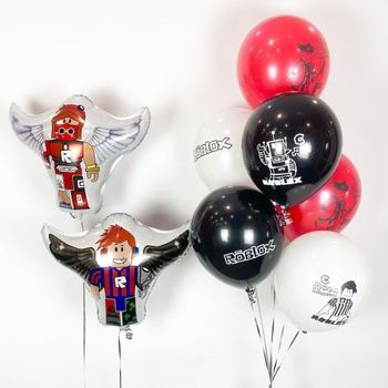 Фонтан с грузиком — 1 шт Шар 30 см, Роблокс, С Днем Рождения! — 6 шт Фигура 53 см, Крылатый герой,2х стороний (Roblox) — 2 шт