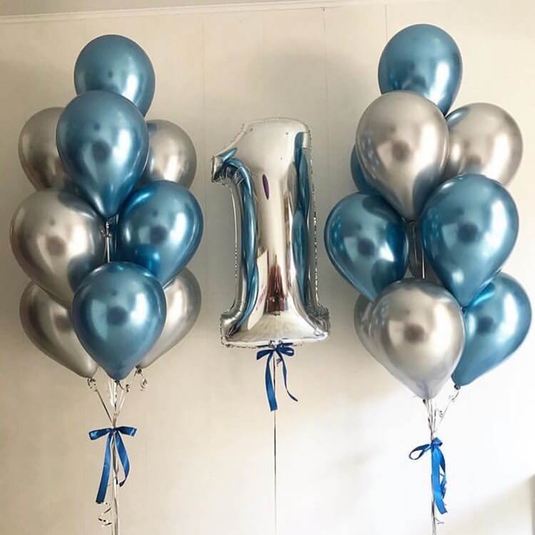 Латексный шар 30 см, хром, синий — 10 шт