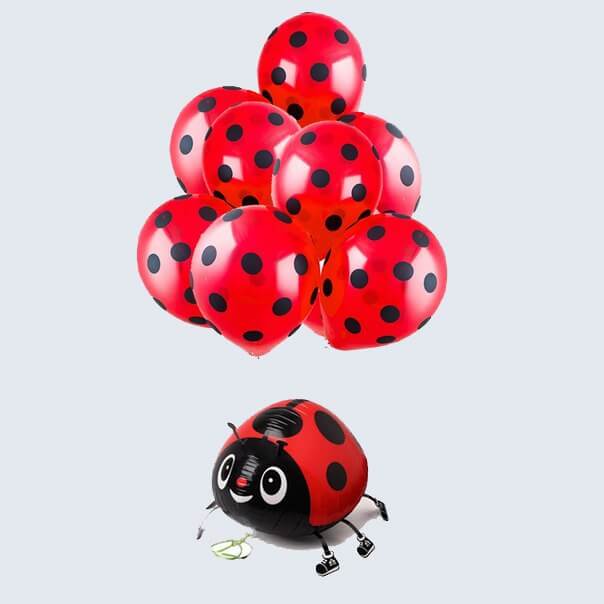 Латексный шар 30 см, «Горошек чёрный», красный, пастель — 9 шт Ходячая фигура Божья коровка, 53 см — 1 шт