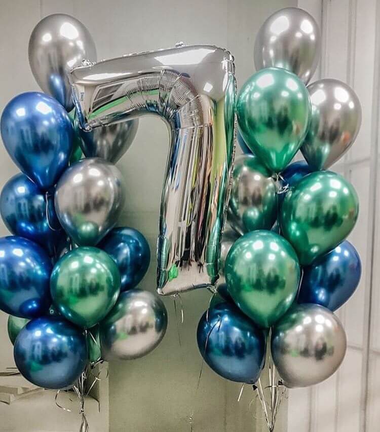 Латексный шар 30 см, хром, бирюзовый — 10 шт