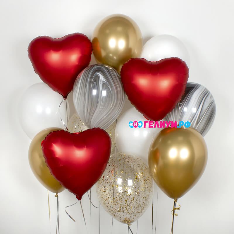 Шар фольгированное сердце, красный сатин, 46 см — 3 шт