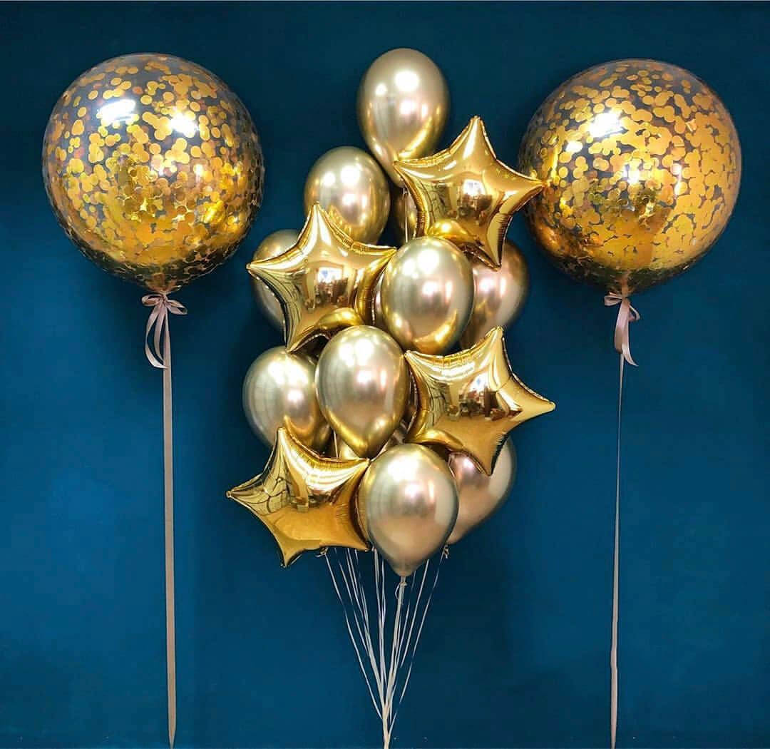 Латексный шар 30 см, хром, золотой — 13 шт