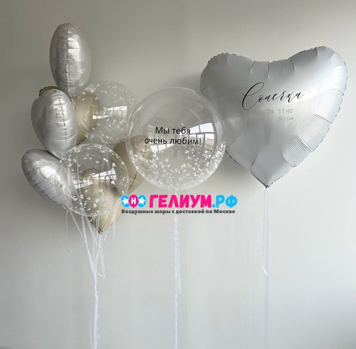 Жемчужное белое фольгированное сердце 46 см — 3 шт