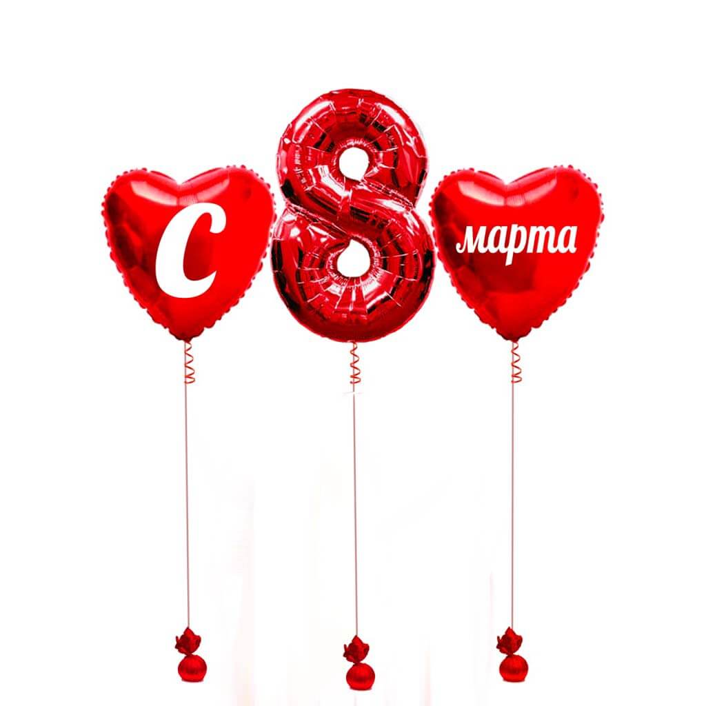 Шар фольгированное сердце, красный, 81 см — 2 шт Цифра 8 красная, 102 см — 1 шт