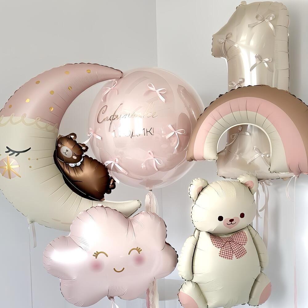 Шар фигура Мишка на луне розовый, 80 см — 1 шт