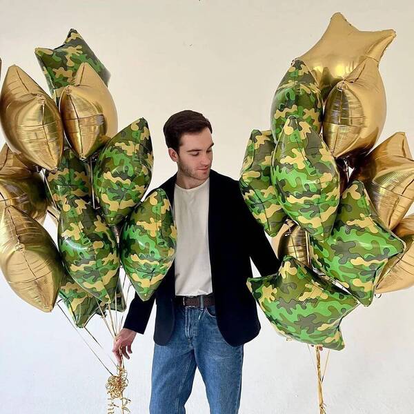 Сатин золото фольгированная звезда 46 см — 10 шт Фольгированная звезда 46 см, Камуфляж, зелёная — 12 шт
