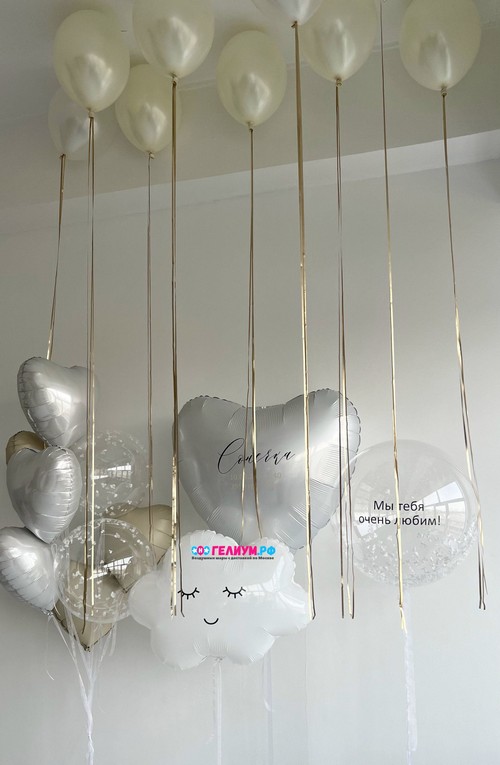 Жемчужное белое фольгированное сердце 46 см — 3 шт
