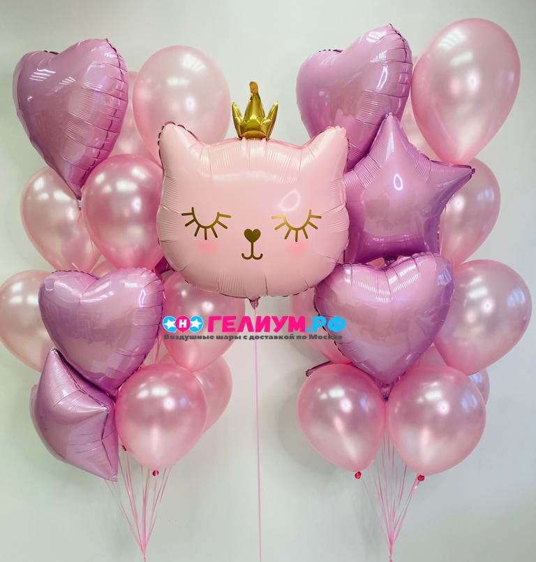 Шар (21»/53 см) Фигура, Котенок Принцесса, Розовый — 1 шт