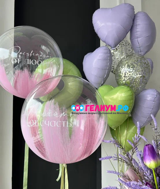 Сатин сиреневое фольгированное сердце 46 см — 5 шт