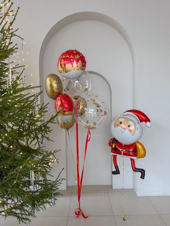 Фольгированный круг 46 см, Новогодняя ночь (красный) — 2 шт