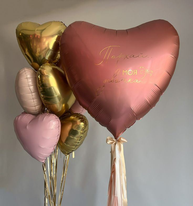 Сатин розовое фольгированное сердце 46 см — 3 шт