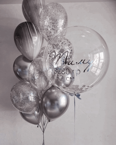 Латексный шар 30 см, хром, серебряный — 5 шт