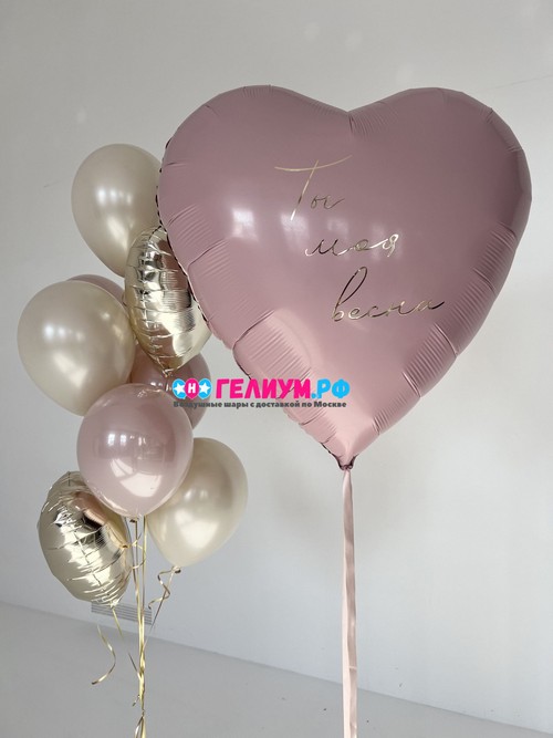 Шар фольгированное сердце, пыльная роза, 91 см — 1 шт
