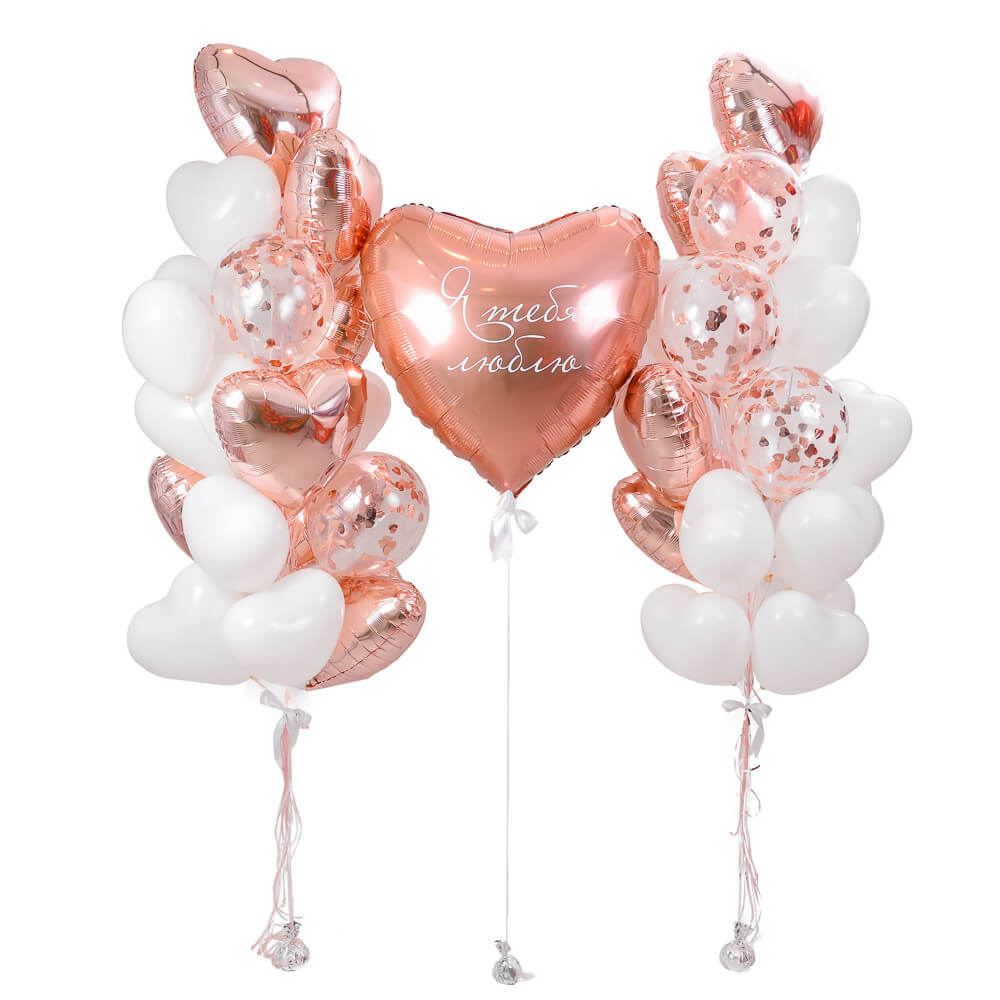 Розовое золото фольгированное сердце 46 см — 12 шт