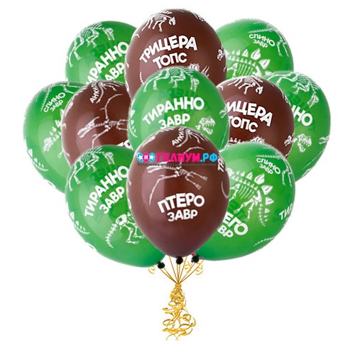 Латексный шар 30 см, «Диноскелеты», зелёный/коричневы, пастель — 15 шт
