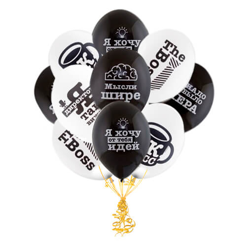 Латексный шар 30 см, «Про босса», белый/чёрный, пастель — 15 шт