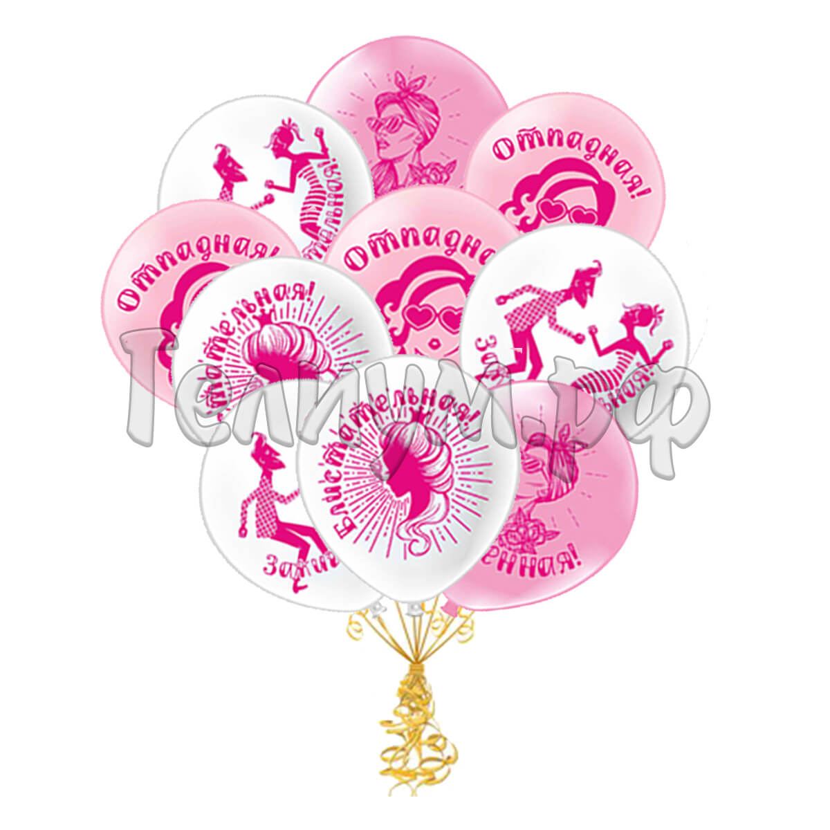 Латексный шар 30 см, «Комплименты девушкам», розовый/прозрачный, пастель — 15 шт