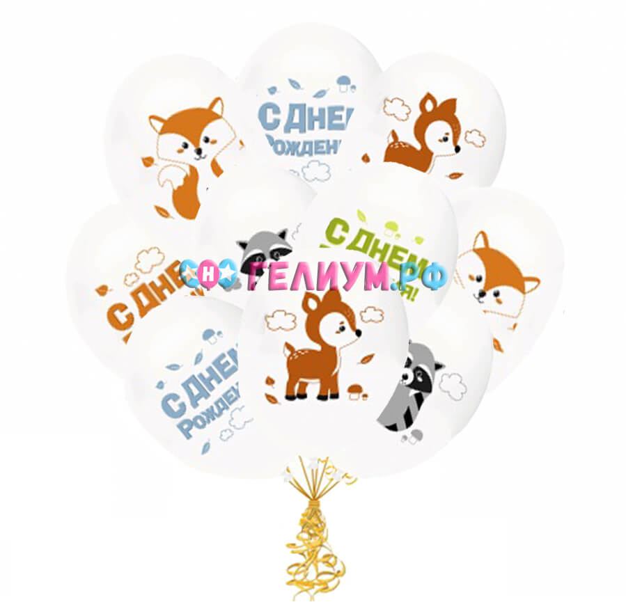 Латексный шар 30 см, «Лесные зверята», белый, пастель — 15 шт