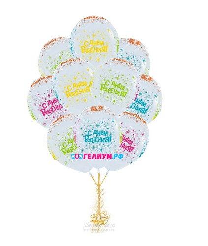 Латексный шар 30 см, «С днём рождения! (флюор)», белый — 15 шт