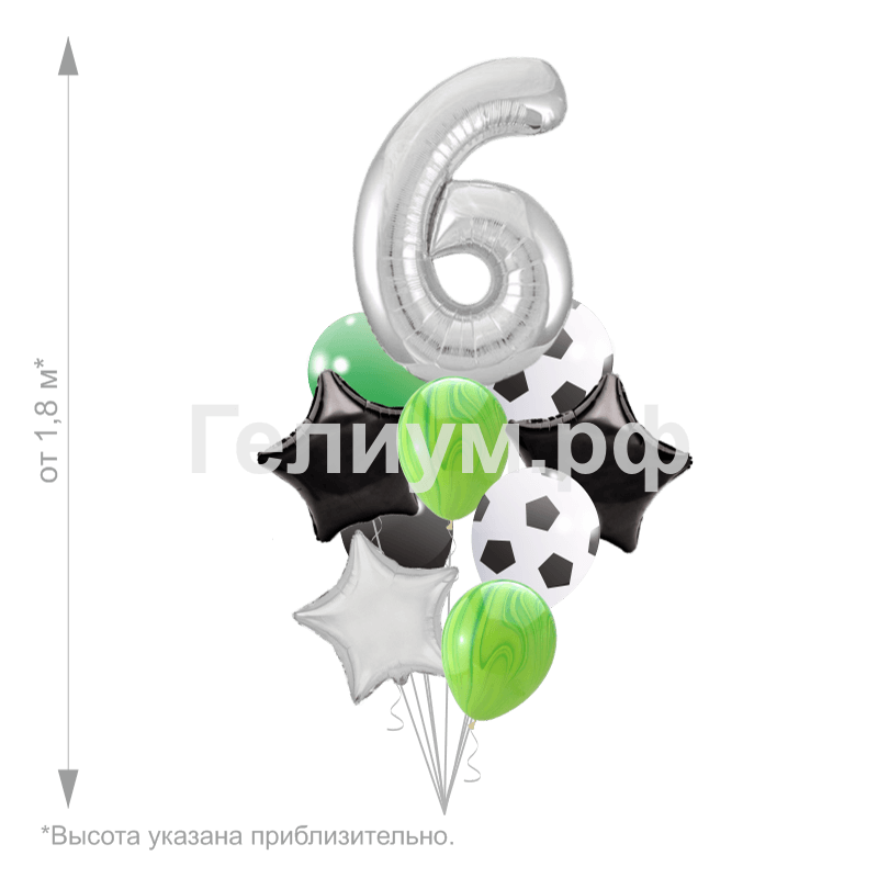 Цифра 6 серебряная, 102 см — 1 шт