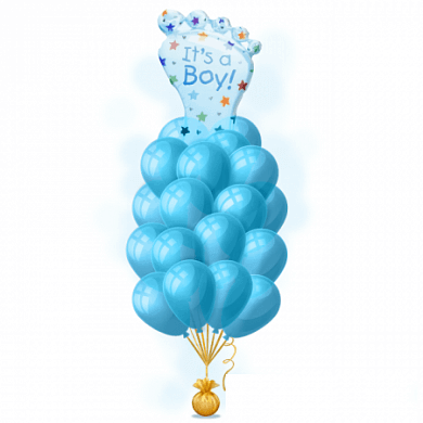 Латексный шар 30 см, пастель, голубой — 15 шт Фигура Ножка малыша 97 см, голубой — 1 шт
