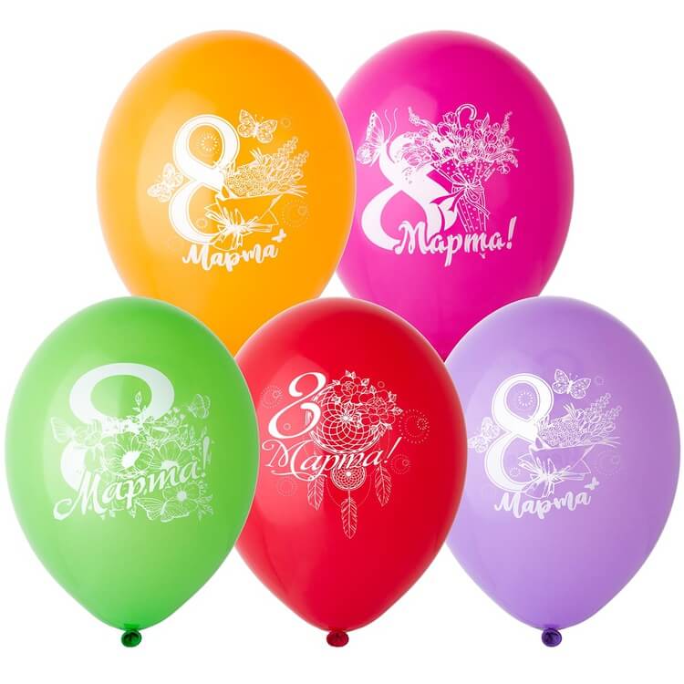 Категории: Воздушные шарики на 8 марта, Латексные шары с рисунком 30 см, Цветные шары