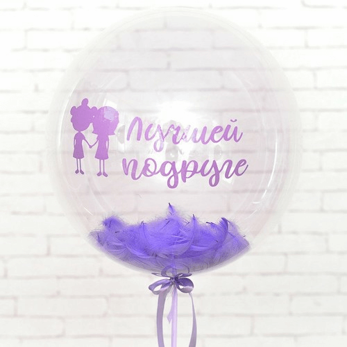 Шар 3D Deco Bubble 46 см, кристалл, прозрачный — 1 шт Перья сиреневые — 1 шт