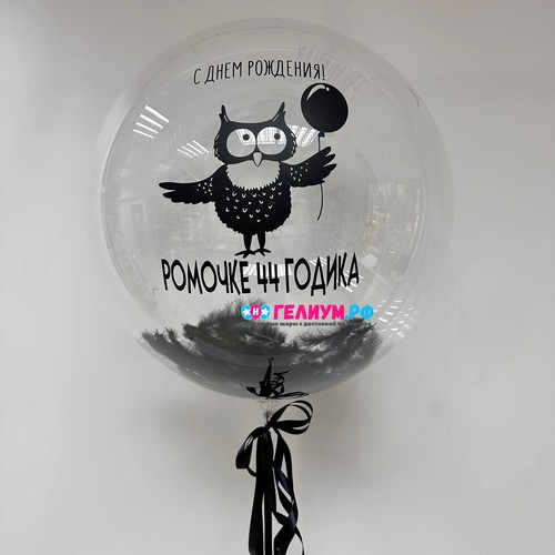 Шар 3D Deco Bubble 46 см, кристалл, прозрачный — 1 шт Наклейка на шар Bubble — 1 шт Перья чёрные — 1 шт