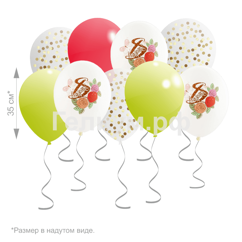 Шар 30 см, «8 марта, розы», ассорти — 5 шт