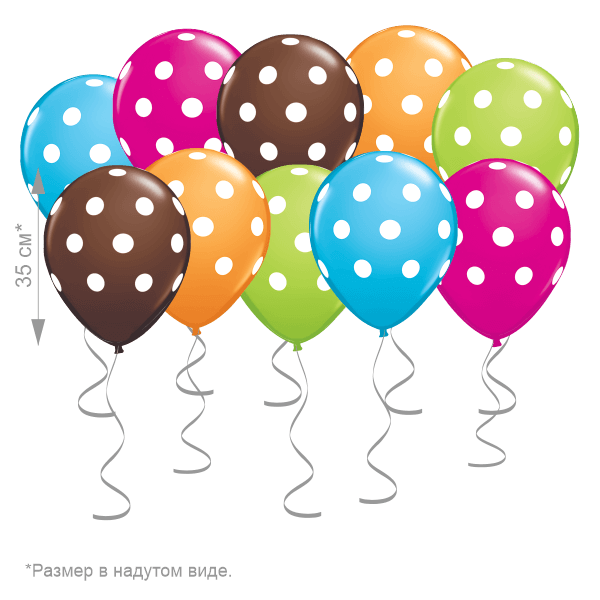 Латексный шар 30 см, белые точки, ассорти, пастель — 10 шт