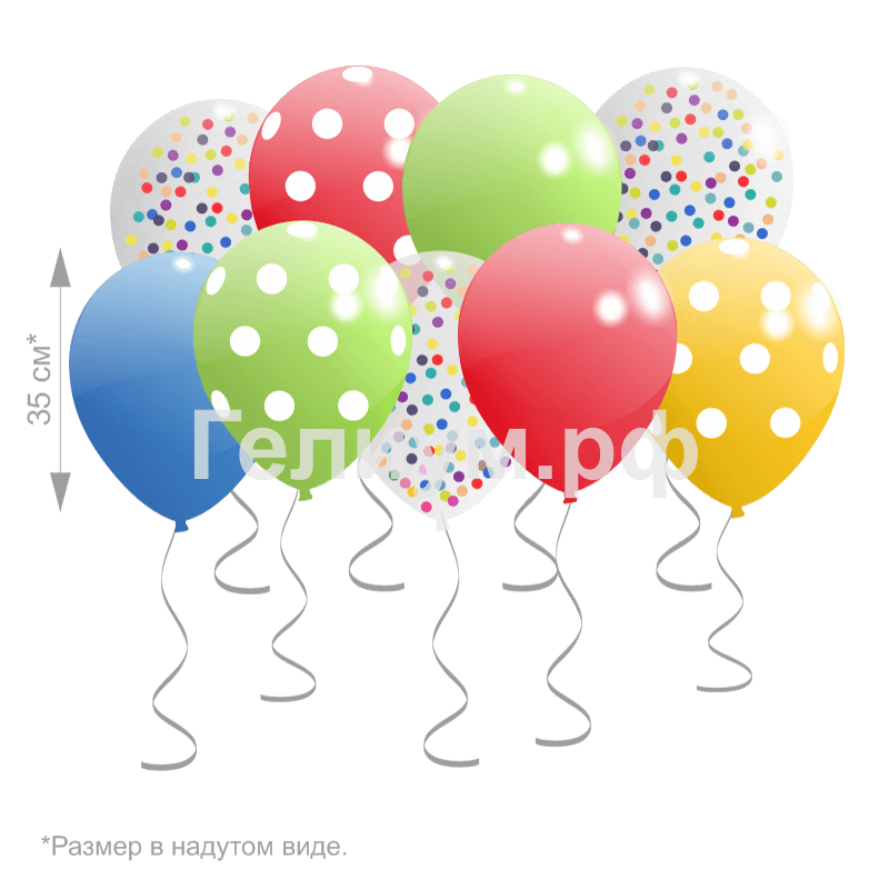 Латексный шар 30 см, белые точки, ассорти, пастель — 5 шт