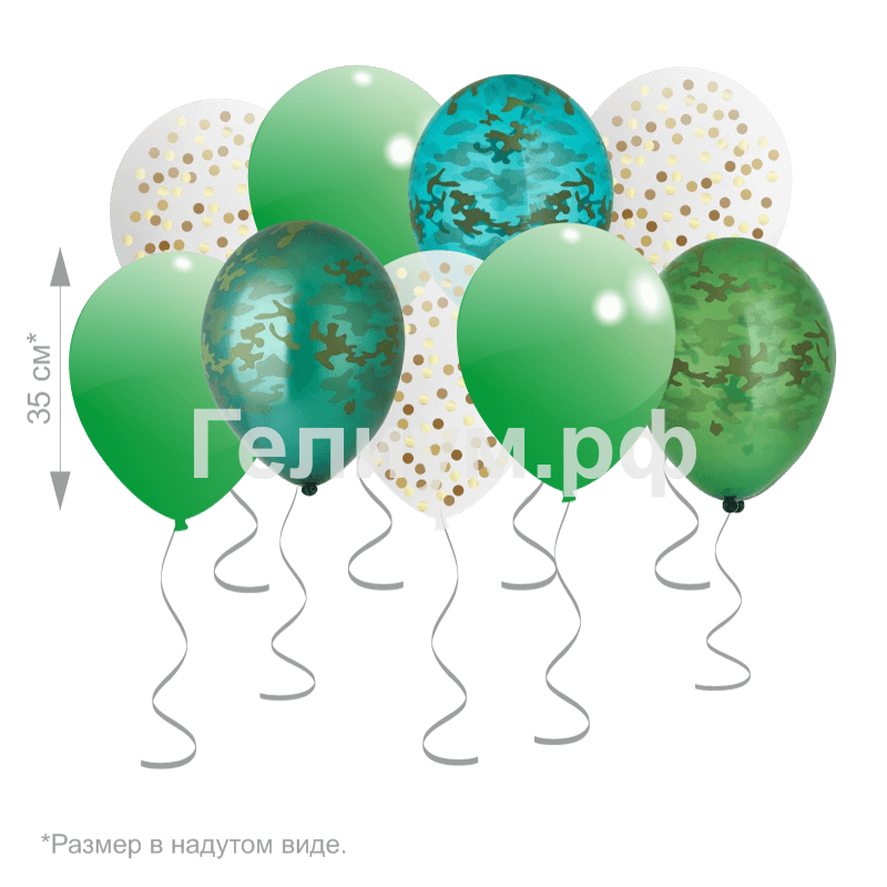 Латексный шар 30 см, «Камуфляж», тёмно-зелёный, пастель — 6 шт