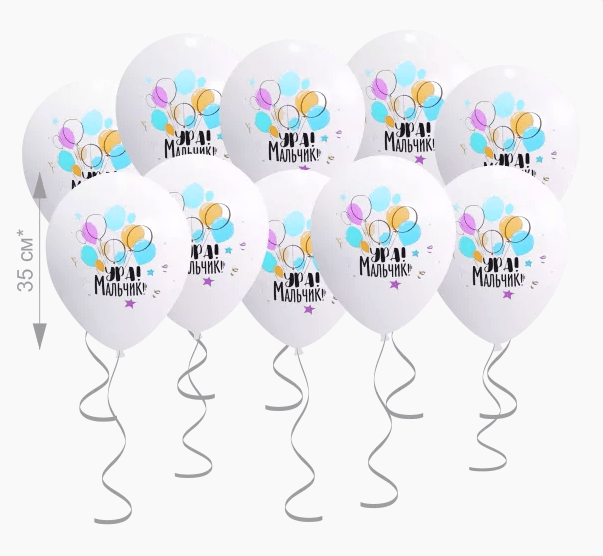 Шар 30 см, «Ура! Мальчик!», белый, пастель — 10 шт