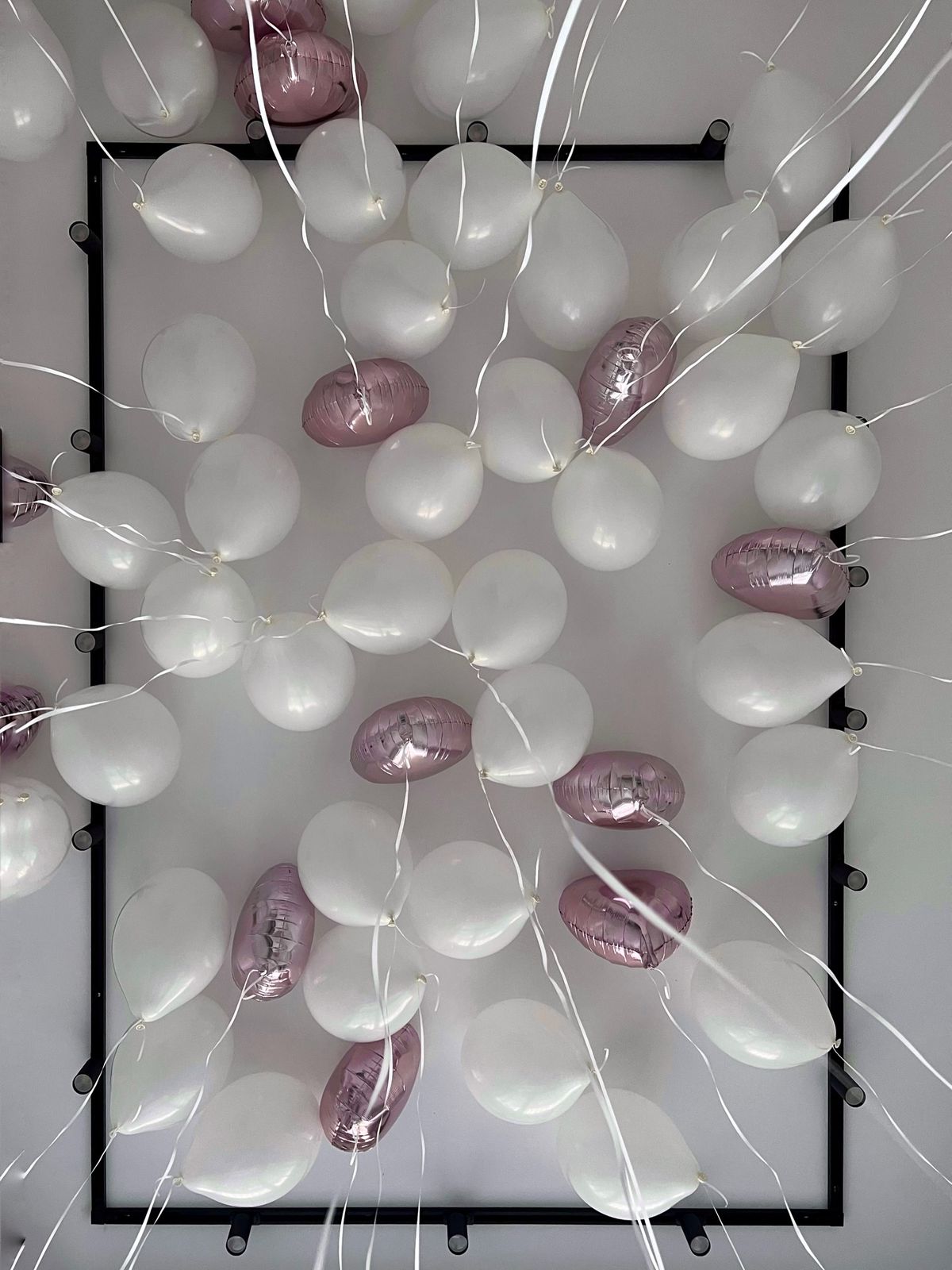 Латексный шар 30 см, пастель, белый — 38 шт Светло-розовое фольгированное сердце 46 см — 12 шт