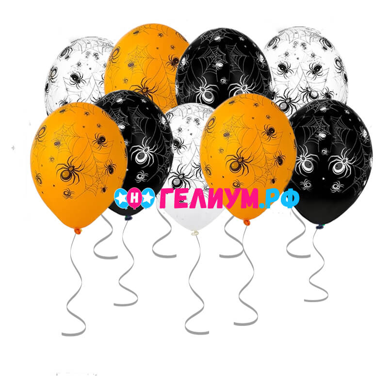 Латексный шар 30 см, «Паутина», оранжевый/чёрный/белый, пастель — 10 шт
