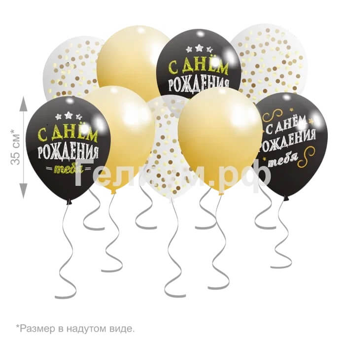 Шар 30 см, «С днём рождения тебя», чёрный, пастель — 6 шт