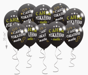 Шар 30 см, «С днём рождения тебя», чёрный, пастель — 10 шт