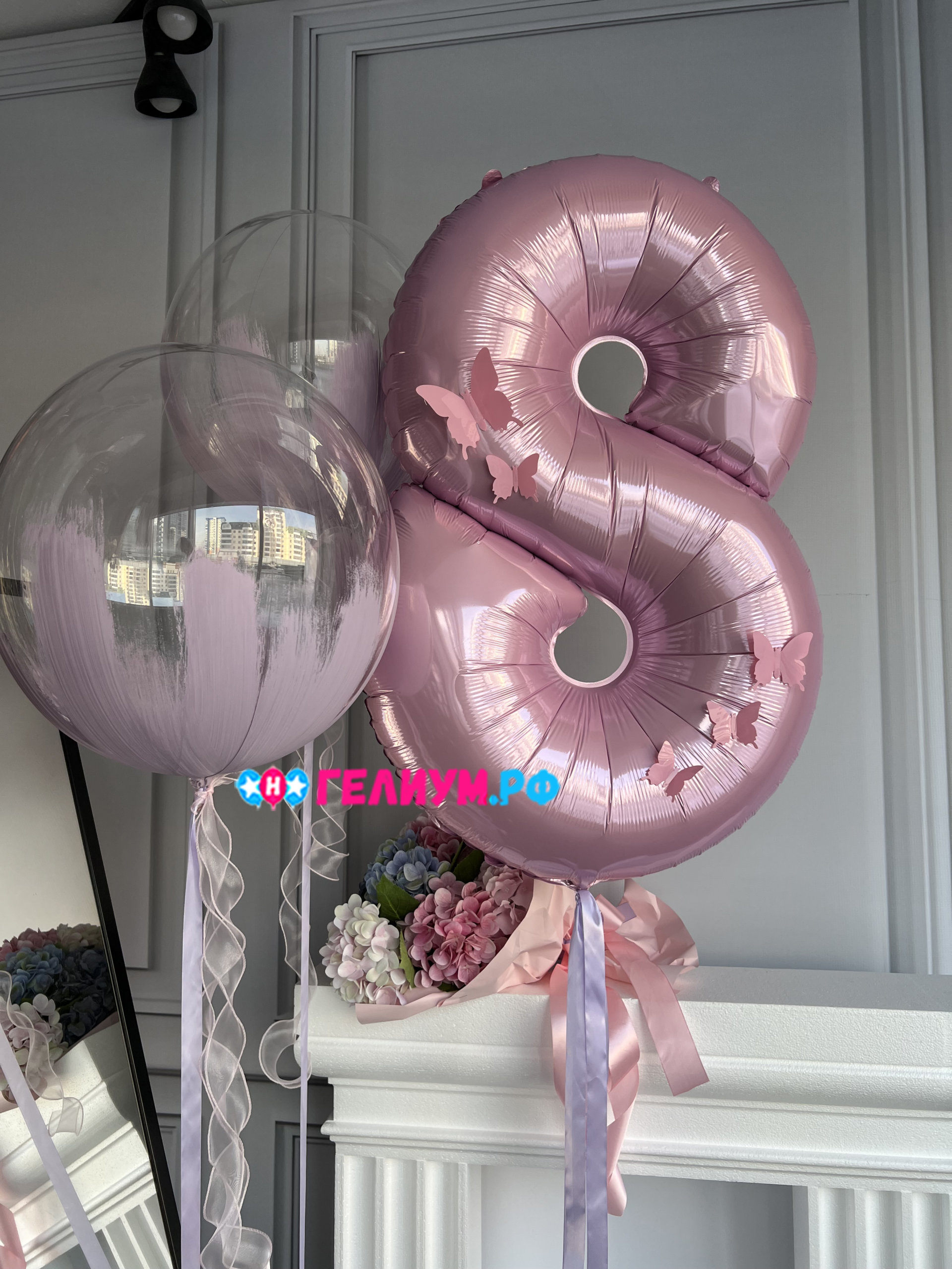 Цифра 8 розовая, 102 см — 1 шт Шар 3D Deco Bubble 46 см, кристалл, прозрачный — 2 шт
