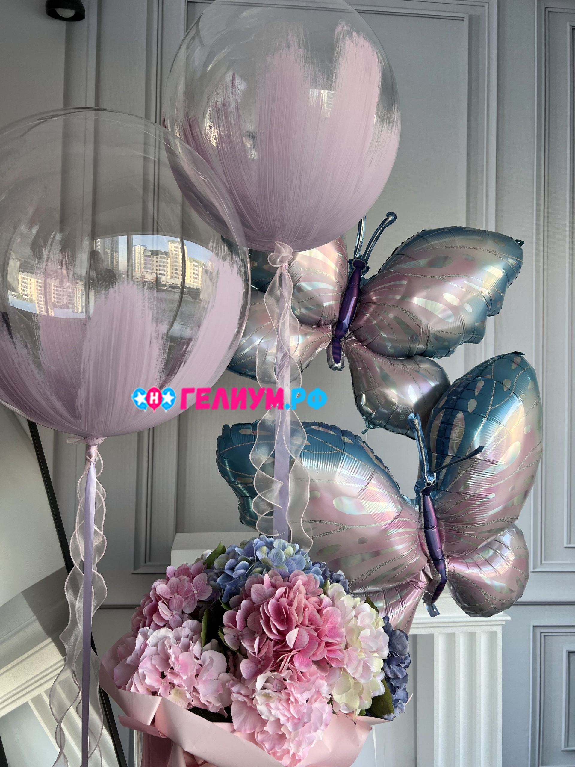 Фольгированный шар фигура, Воздушная бабочка, 102 см — 2 шт Шар 3D Deco Bubble 46 см, кристалл, прозрачный — 2 шт