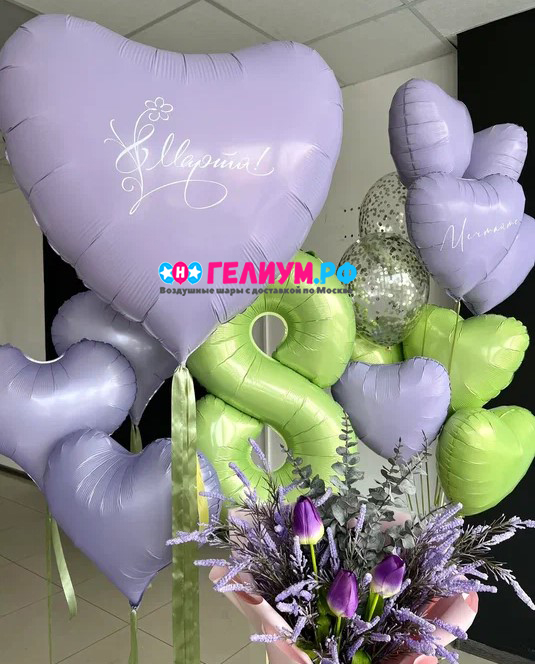 Шар фольгированное сердце, сиреневый макарунс, 91 см — 1 шт