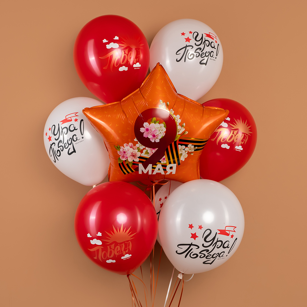 Звезда шар 9 мая — 1 шт Шар 30 см, 9 мая — 10 шт